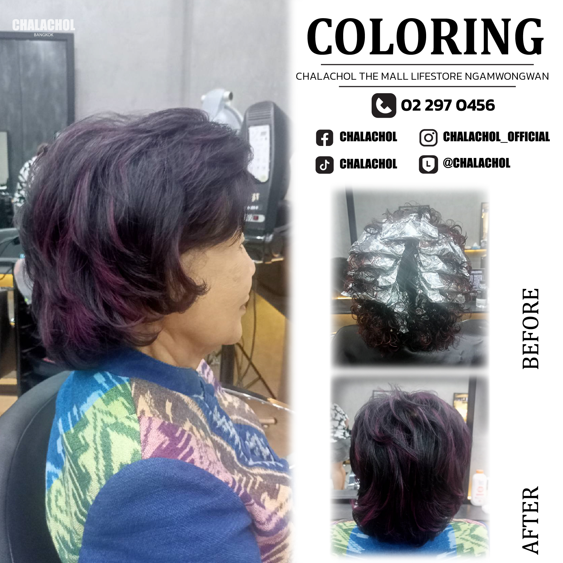 ราคาค่าบริการทำสี ดัด และยืดขึ้นอยู่กับความยาว ความหนา สภาพเส้นผม และผลลัพธ์ที่ต้องการ โปรดไปที่ร้านเสริมสวยล่วงหน้าเพื่อพูดคุยกับสไตลิสต์ของเราเพื่อขอคำแนะนำและใบเสนอราคาขั้นสุดท้าย