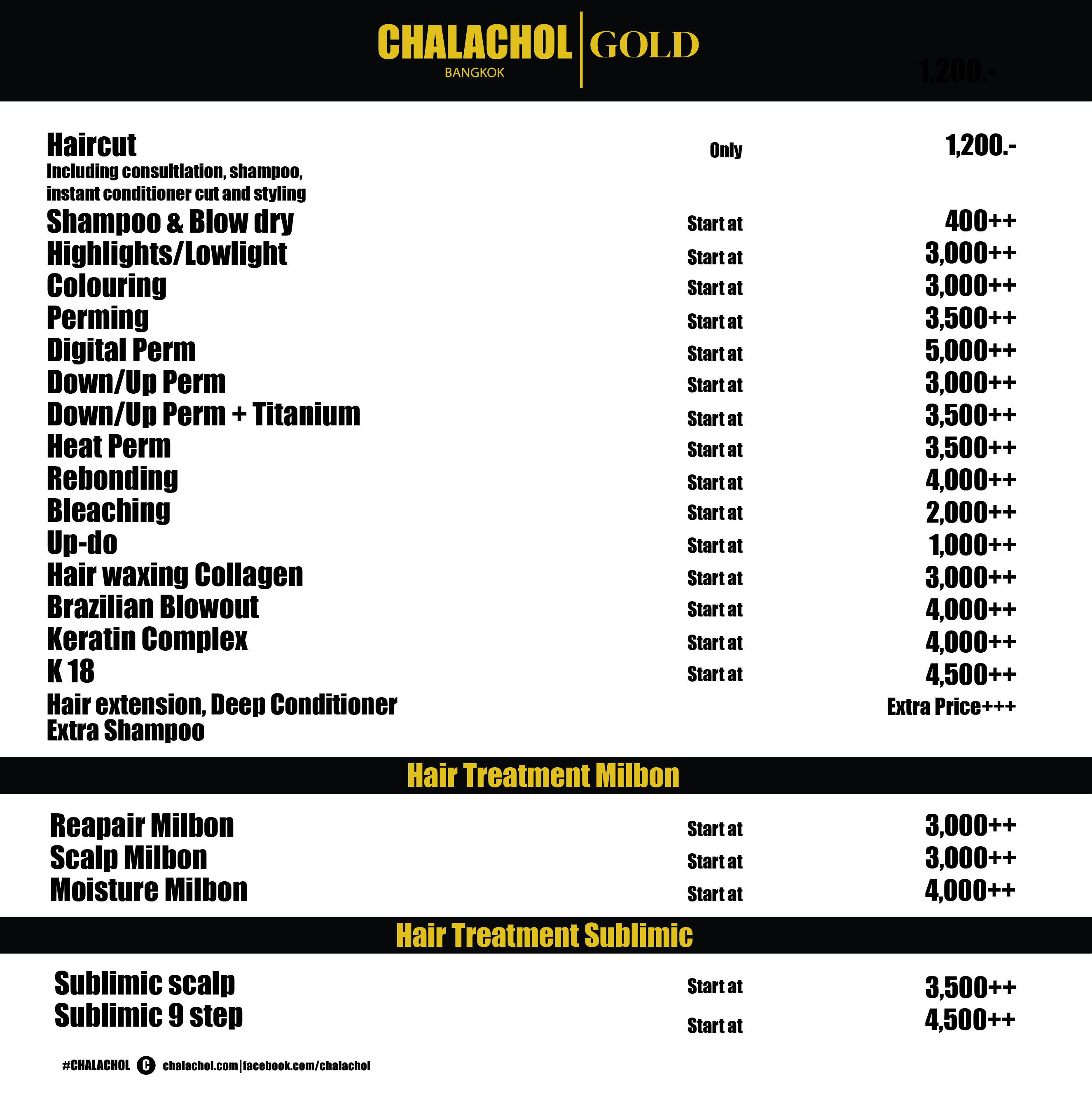 ราคาค่าบริการทำสี ดัด และยืดขึ้นอยู่กับความยาว ความหนา สภาพเส้นผม และผลลัพธ์ที่ต้องการ โปรดไปที่ร้านเสริมสวยล่วงหน้าเพื่อพูดคุยกับสไตลิสต์ของเราเพื่อขอคำแนะนำและใบเสนอราคาขั้นสุดท้าย