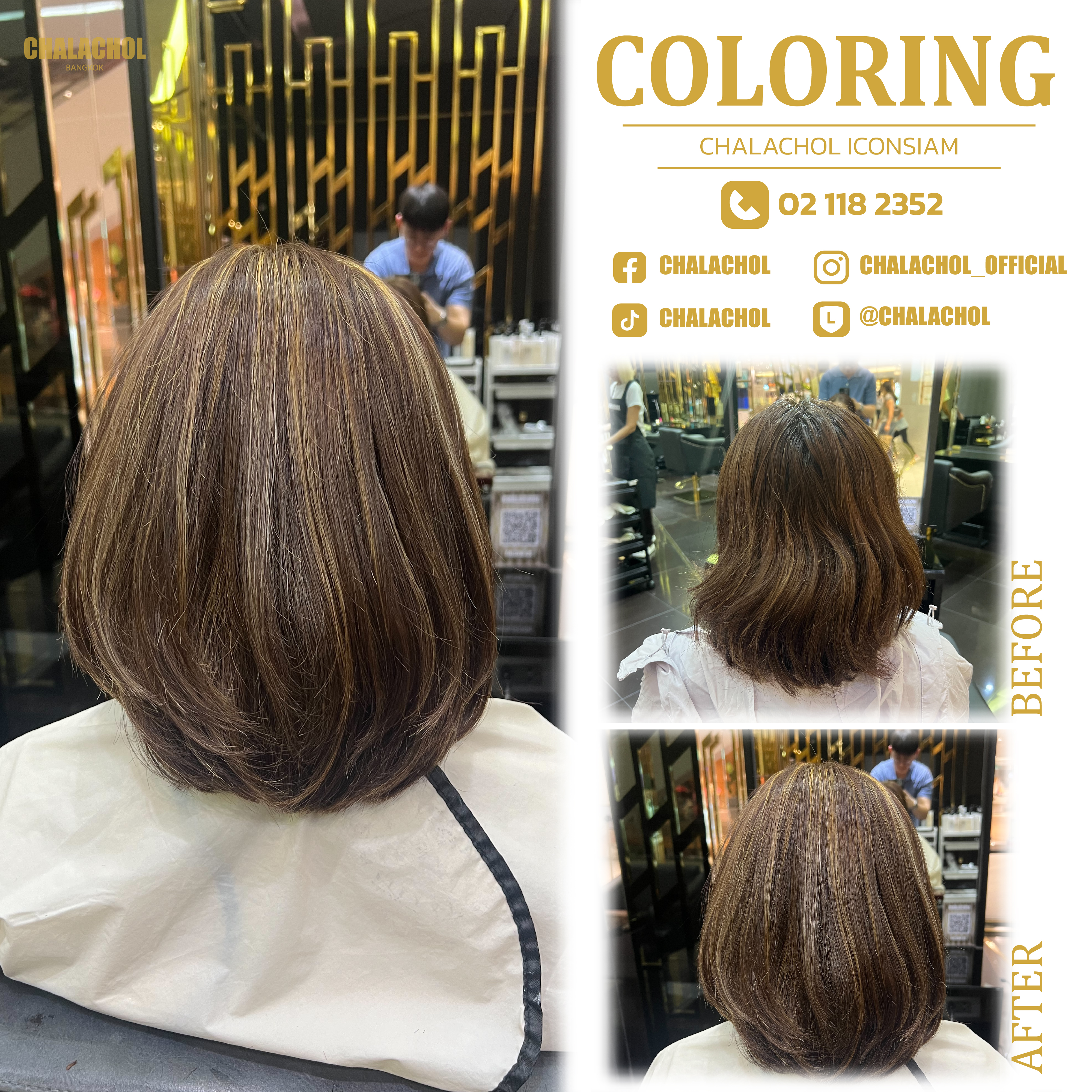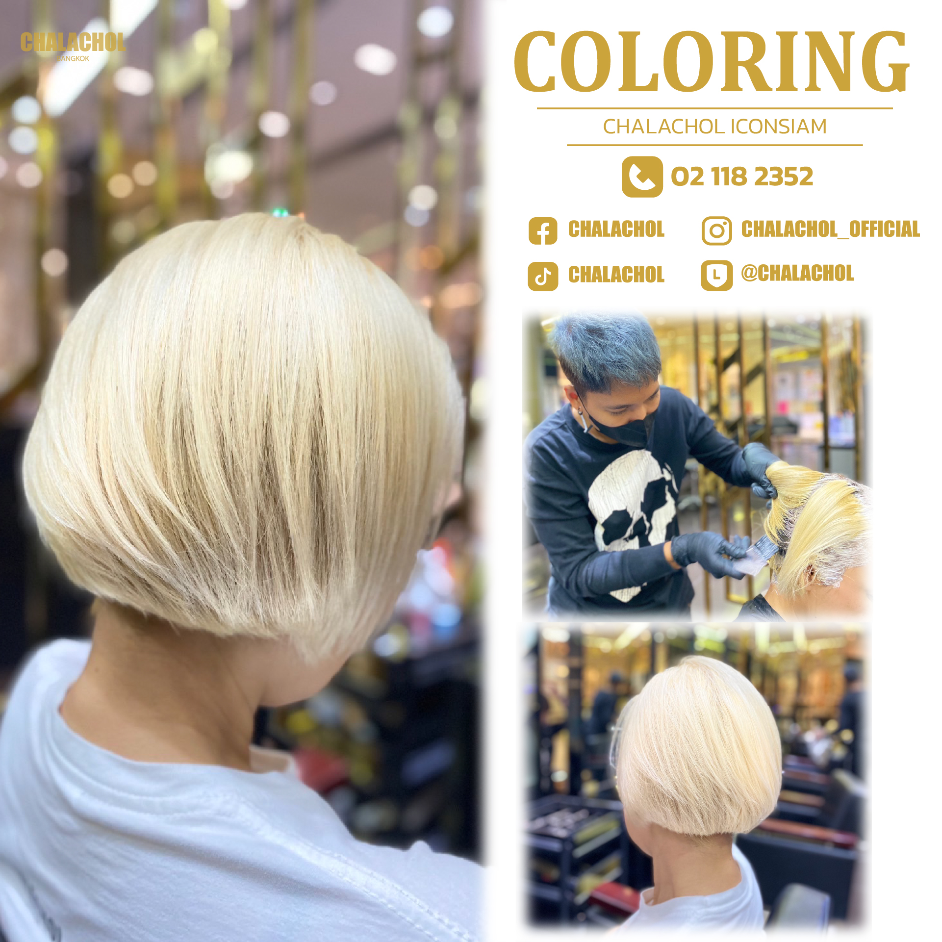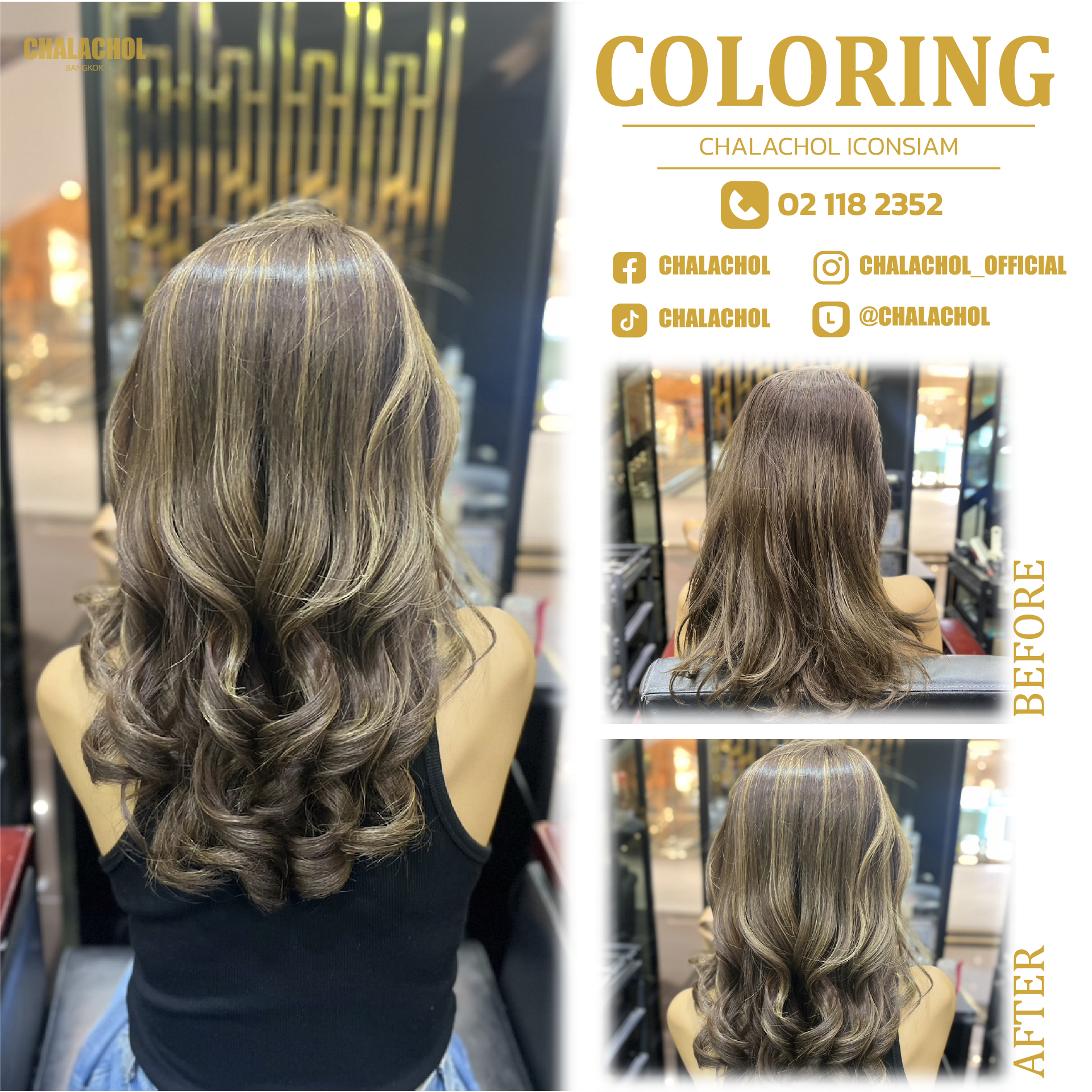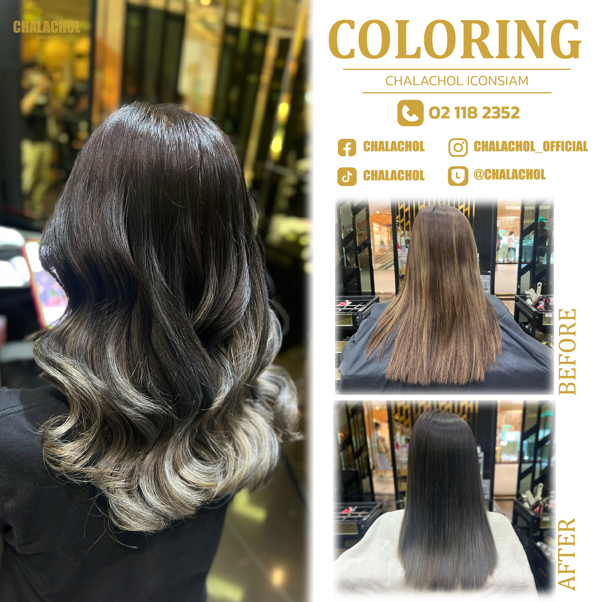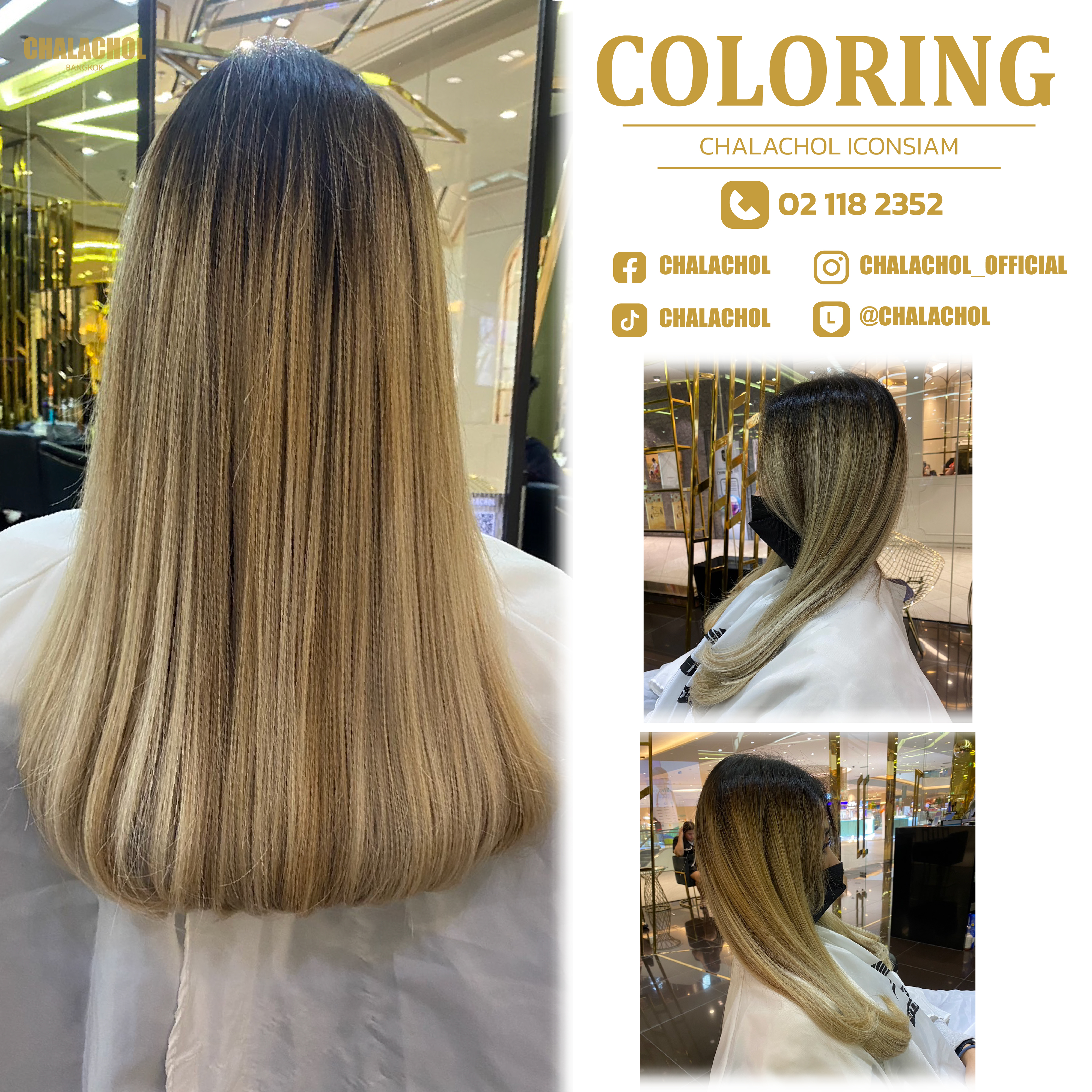 ราคาค่าบริการทำสี ดัด และยืดขึ้นอยู่กับความยาว ความหนา สภาพเส้นผม และผลลัพธ์ที่ต้องการ โปรดไปที่ร้านเสริมสวยล่วงหน้าเพื่อพูดคุยกับสไตลิสต์ของเราเพื่อขอคำแนะนำและใบเสนอราคาขั้นสุดท้าย